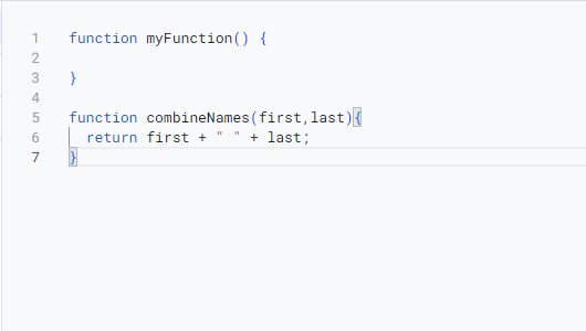 function combineNames(first, last) { return first + " " + last; }