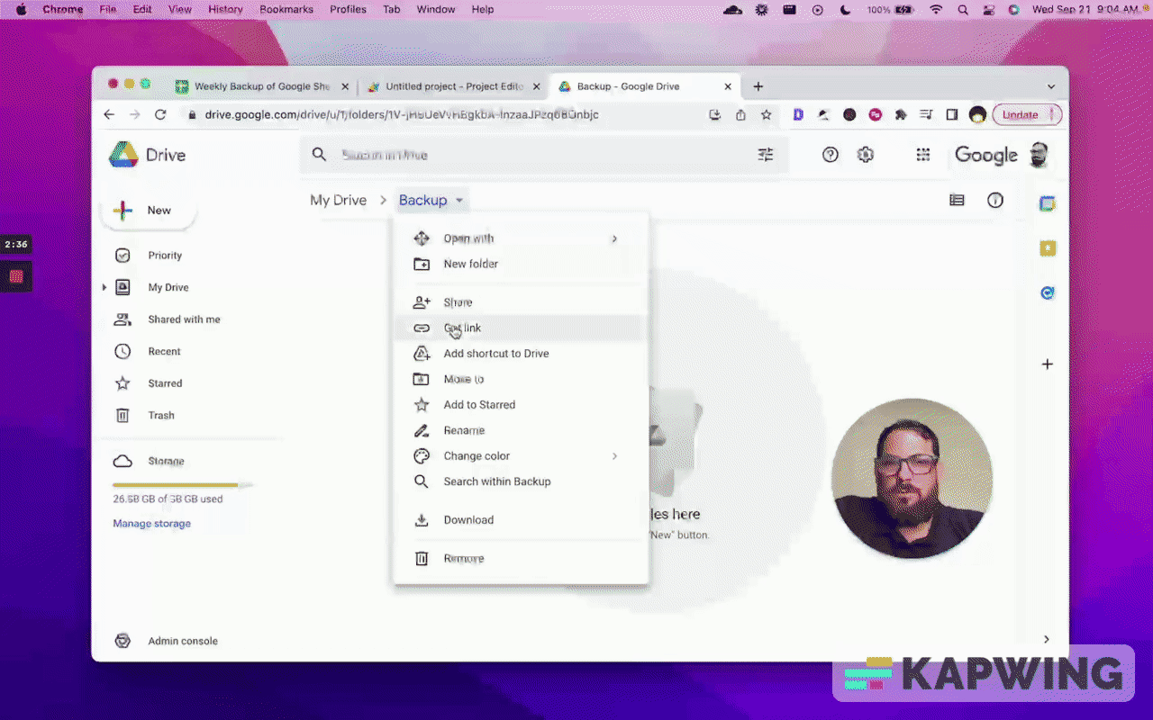 We have links to our Google Drive folder. Just right click on the “Backup” name and go to “Get Link” in your Google Drive folder.
