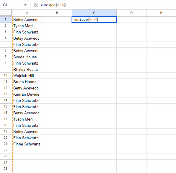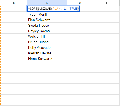 UNIQUEFormula: - In a new column, enter the formula