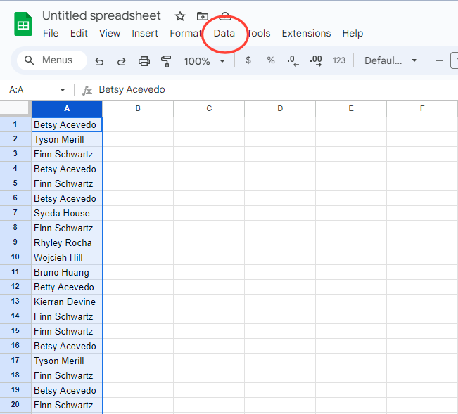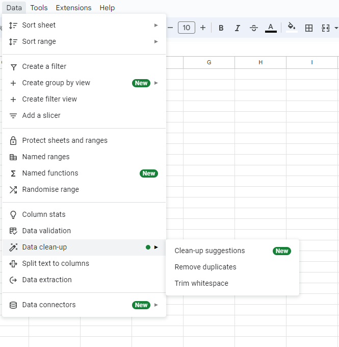 - Access the Data Cleanup tools: Go to the "Data" tab at the top of your Google Sheet.
