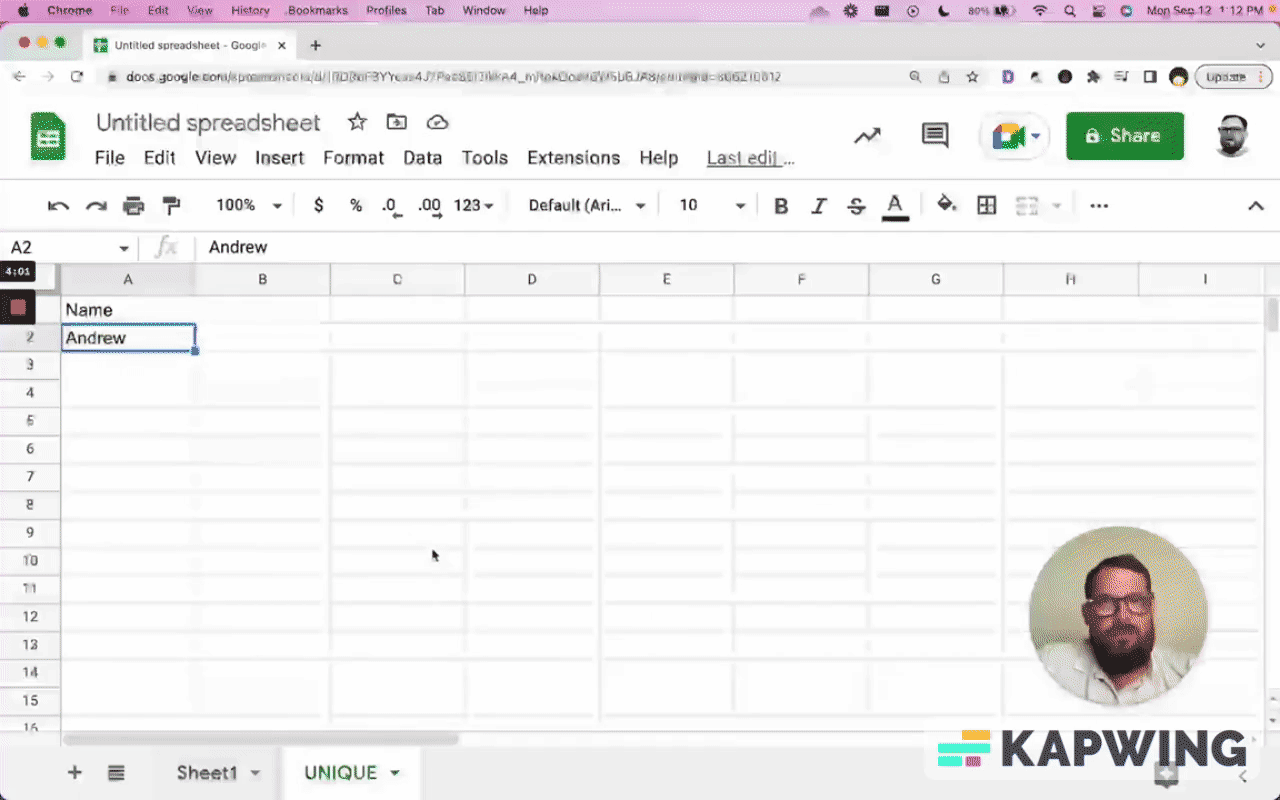 That's where you can also catch yourself having data where data shouldn't be. The biggest way you can see that there is a mistake is when there is a row that has extra information that literally doesn't happen. And you can the black bar. That is the visual representation of this mistake. However, we can have another tab and we can call it “UNIQUE.”