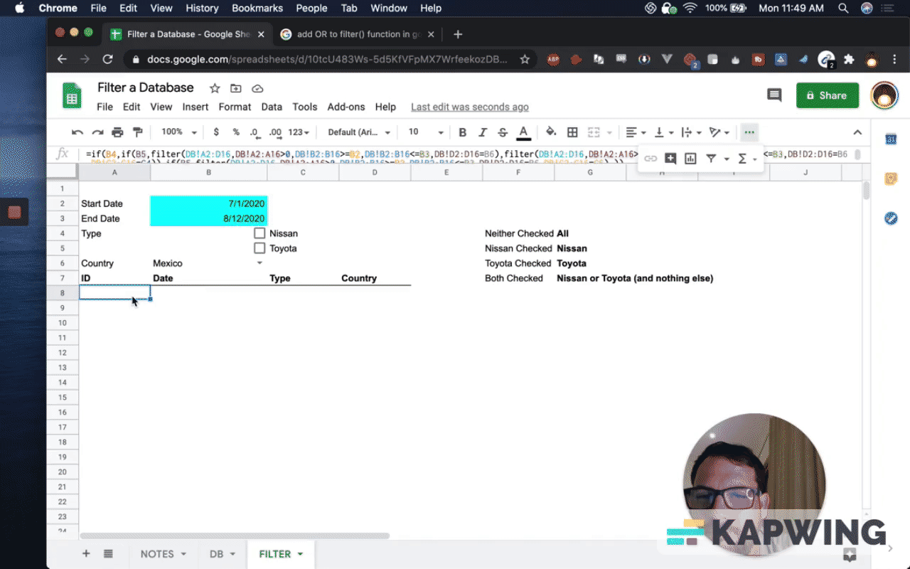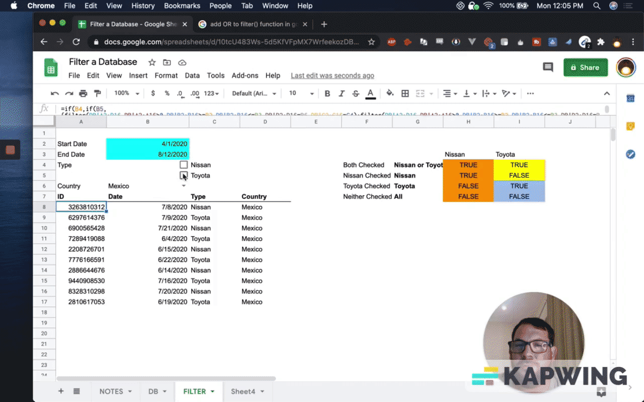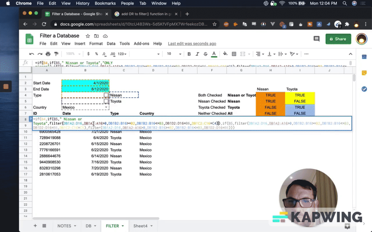 Filter a Database in Google Sheets based on Dates, Checkboxes, and Dropdown selections!