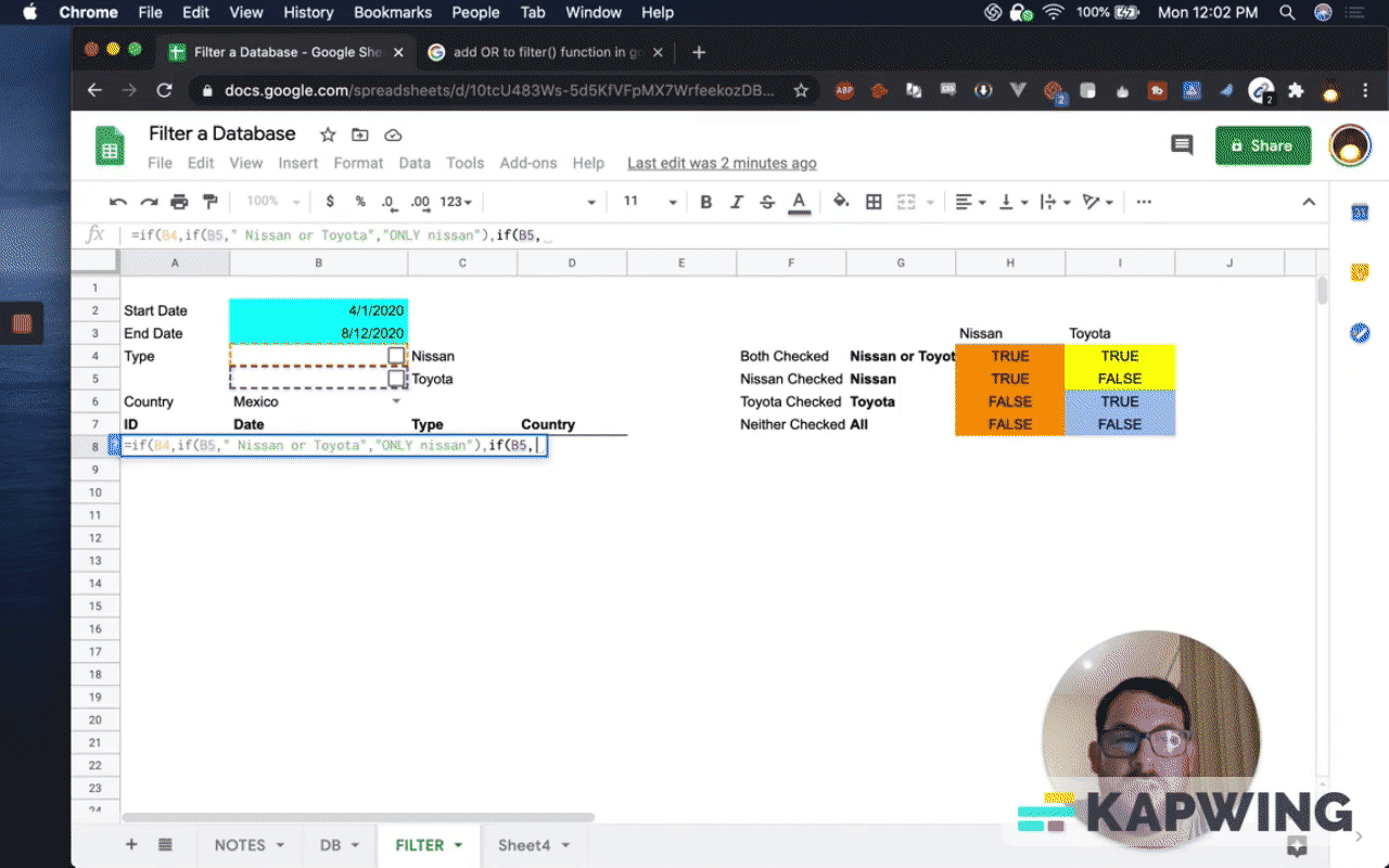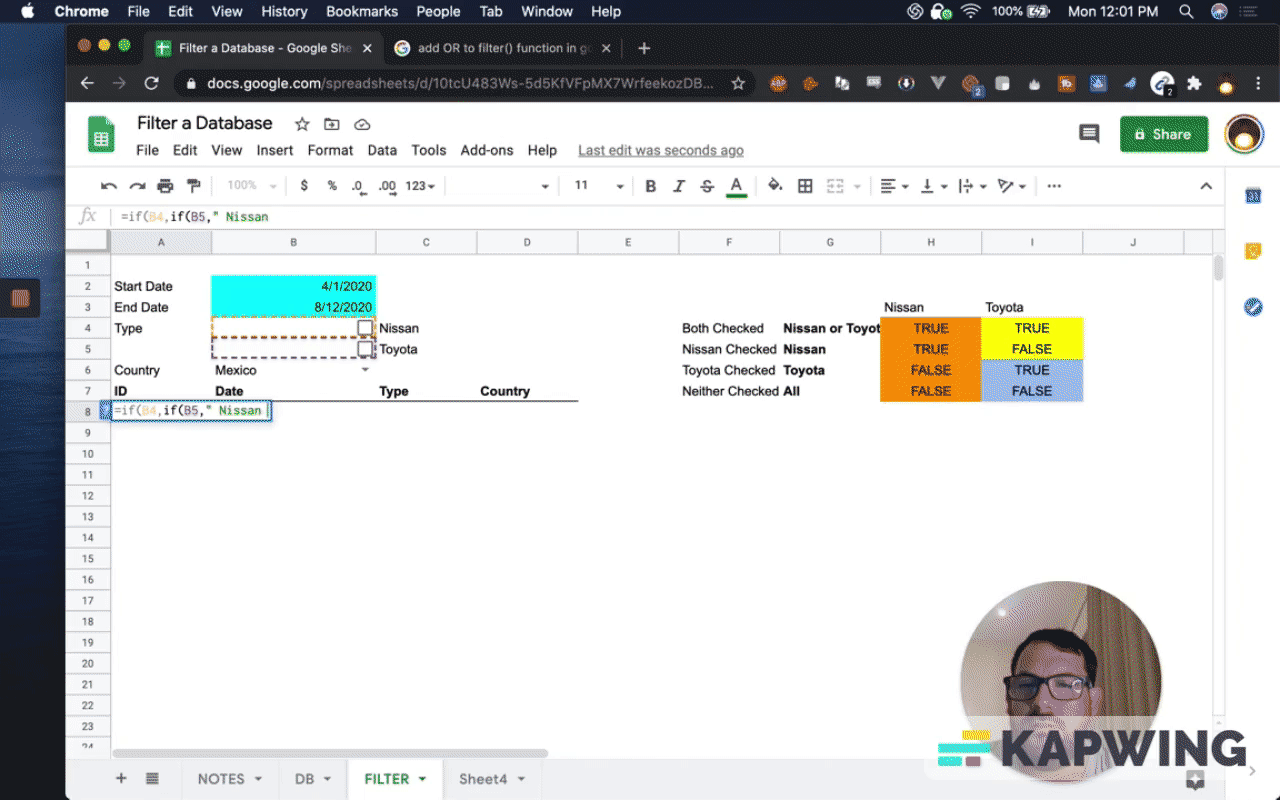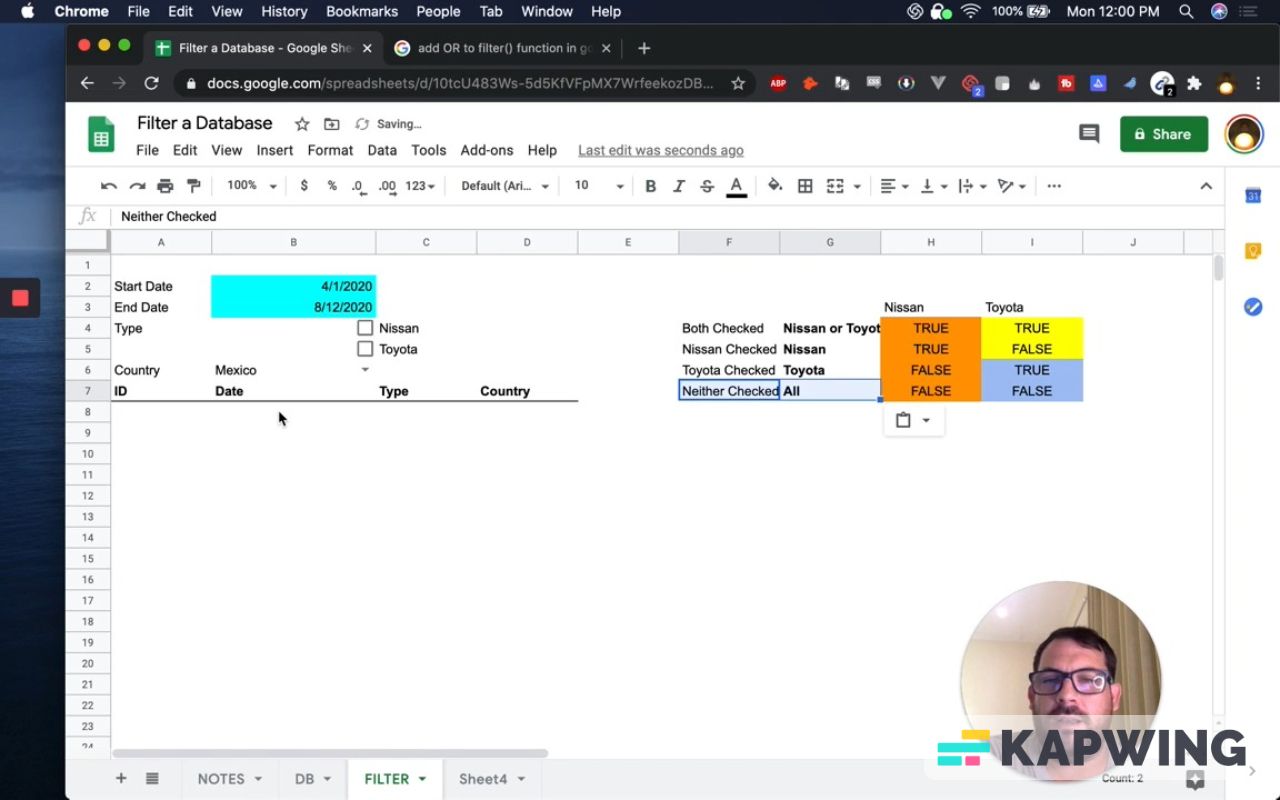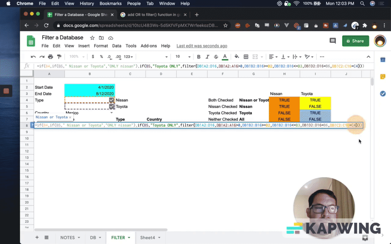 Filter a Database in Google Sheets based on Dates, Checkboxes, and Dropdown selections!