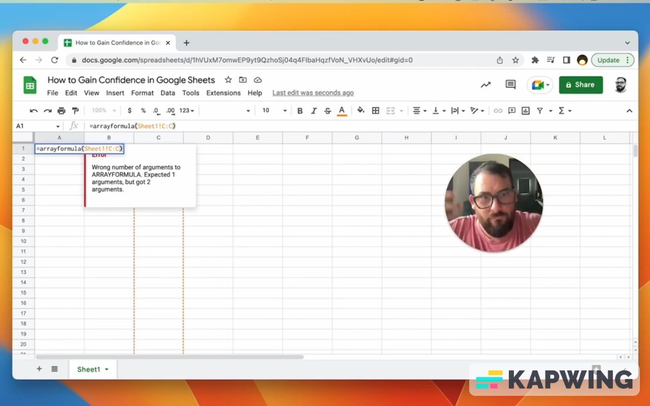 If you do write arrayformula(), you will get errors if you write it wrong. Sometimes, it will be very specific. (Watch the video below.)