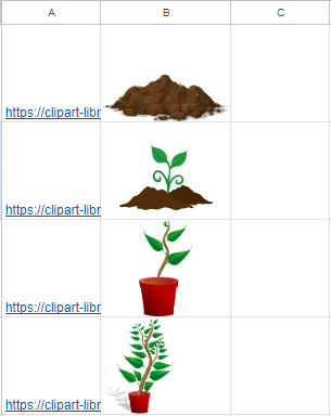 You might want to show the same image for certain counts or even add more stages. To do this, just tweak the formula by repeating an image URL for multiple numbers. For example, if you want the plant to grow slowly, you can make the sprout appear for both 1 and 2 tasks like this: