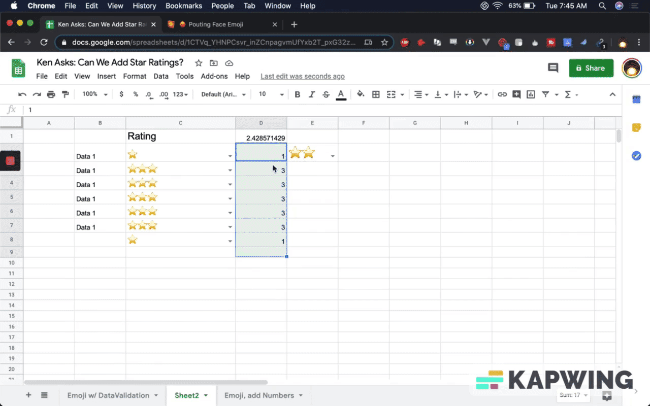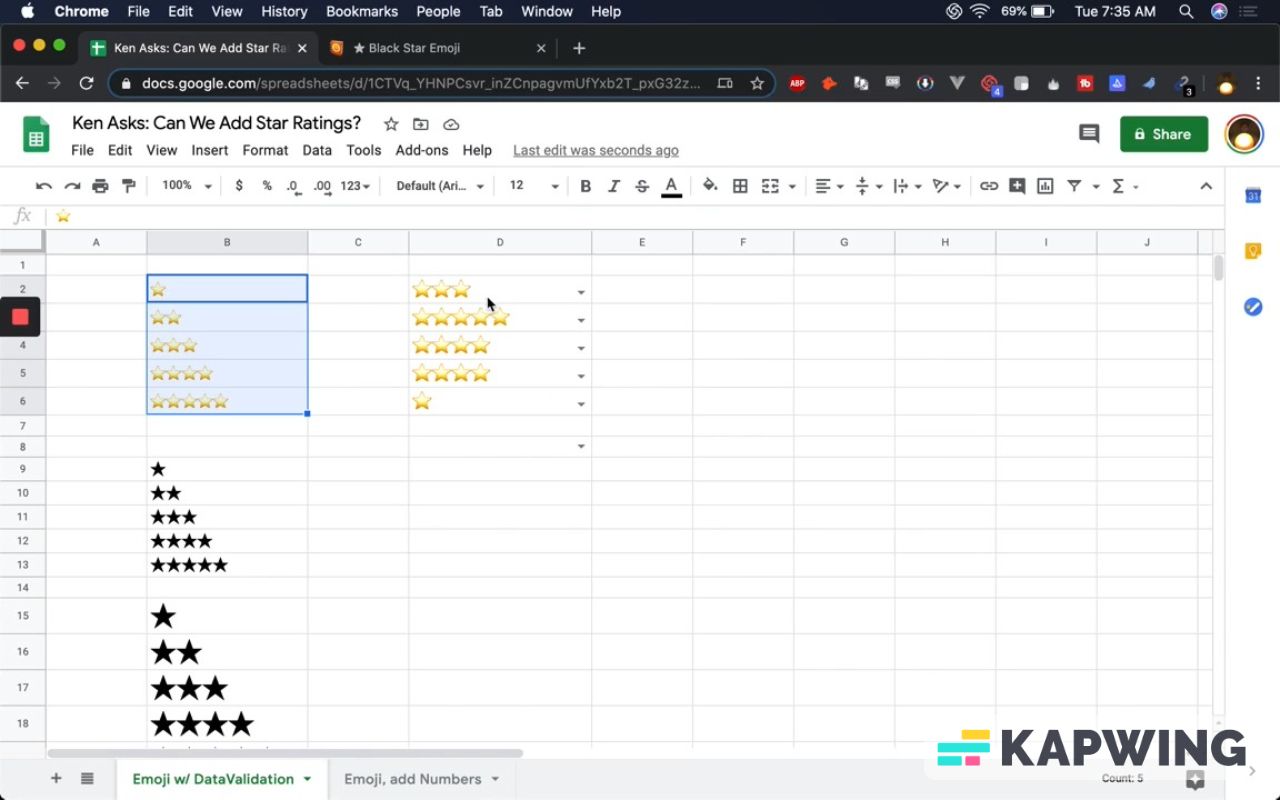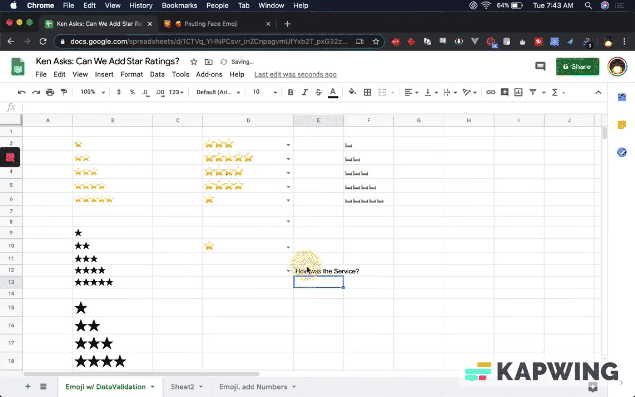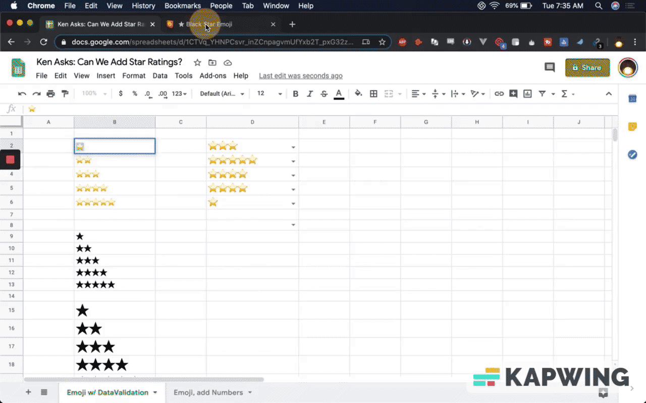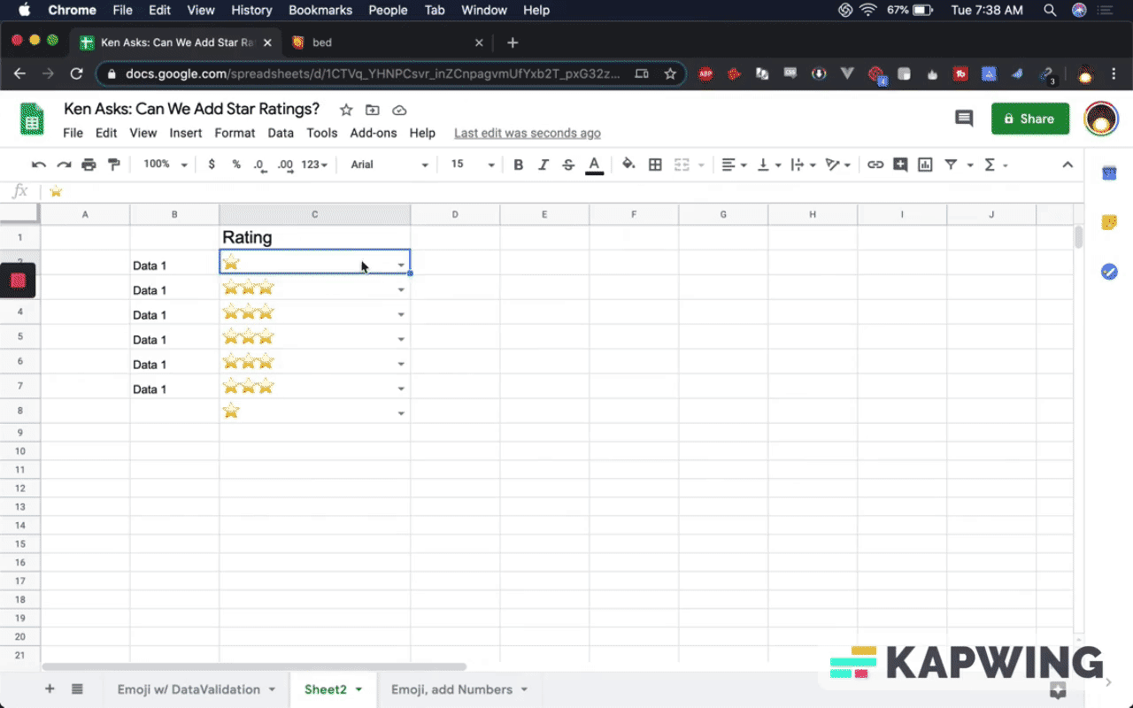 Ken Asks Can We Add Star Ratings in Google Sheets?