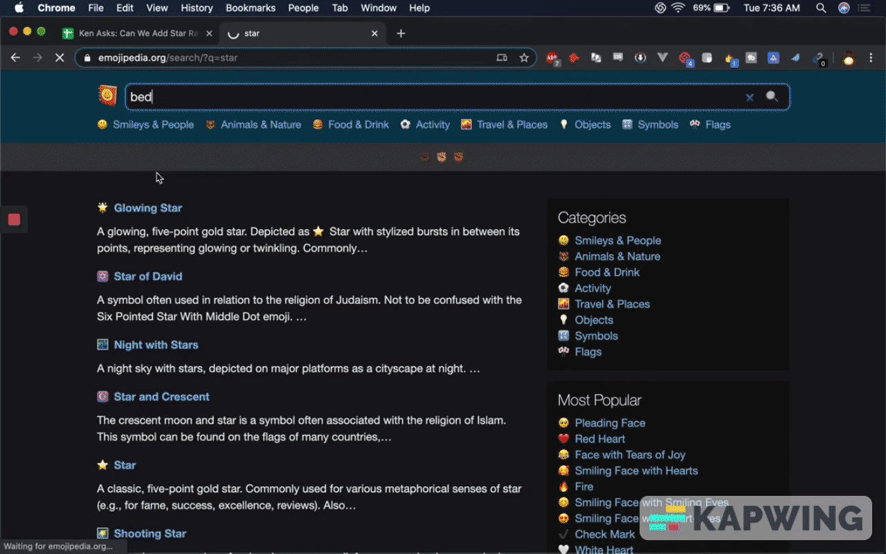 I just copied this black one from Emojipedia. You can also type in “star” and there's a glowing star.