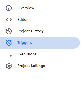 - In the Apps Script editor, go to the Triggers tab (the clock icon on the left).