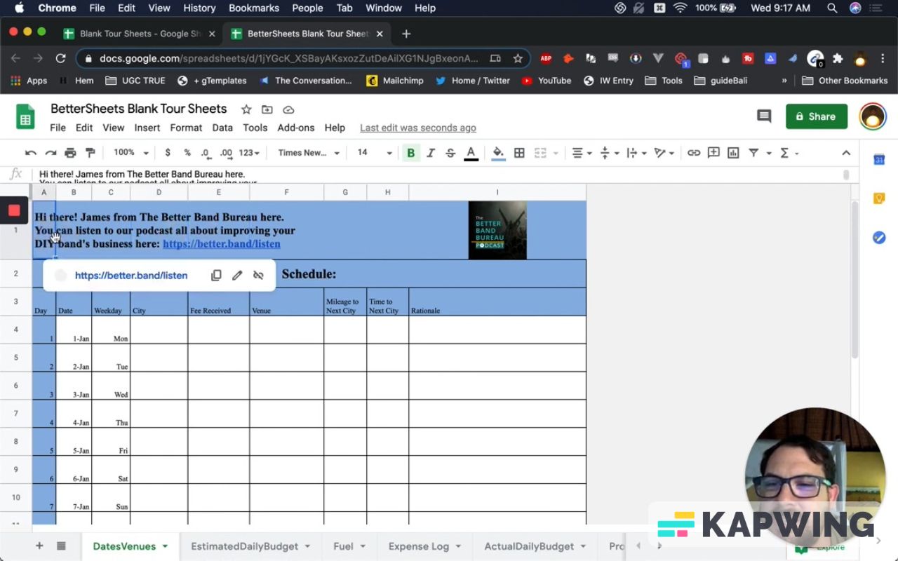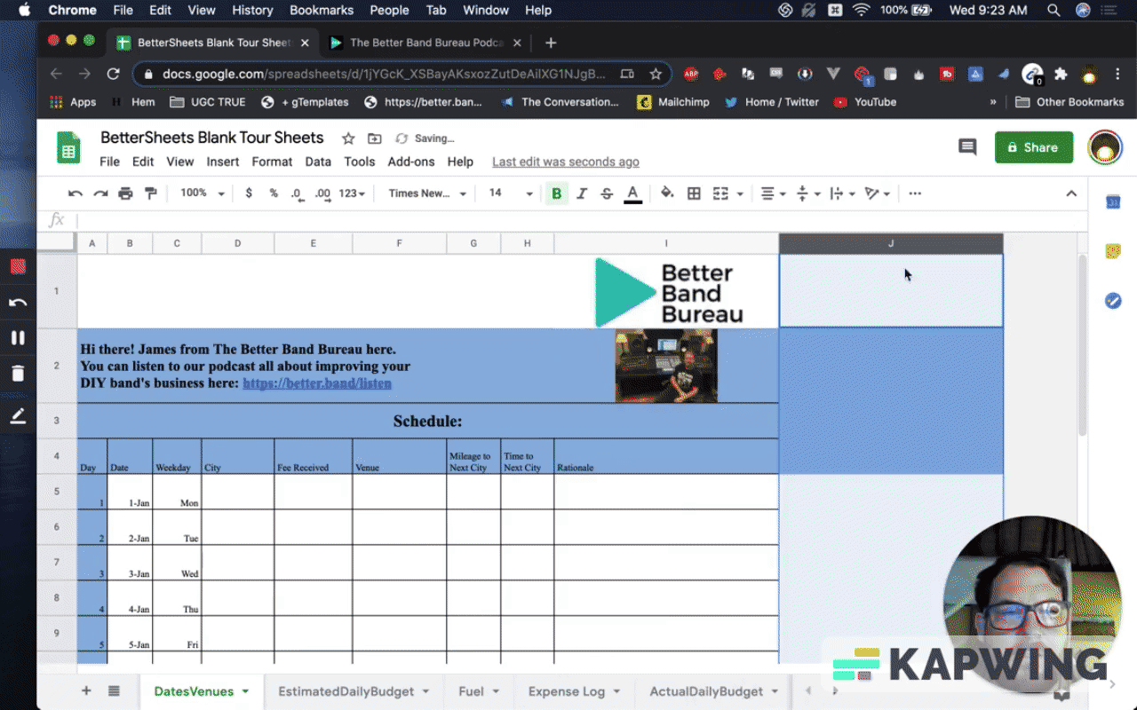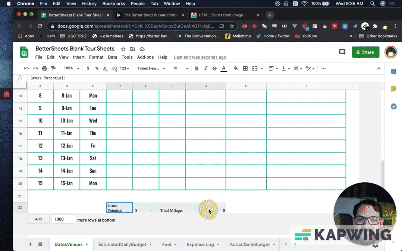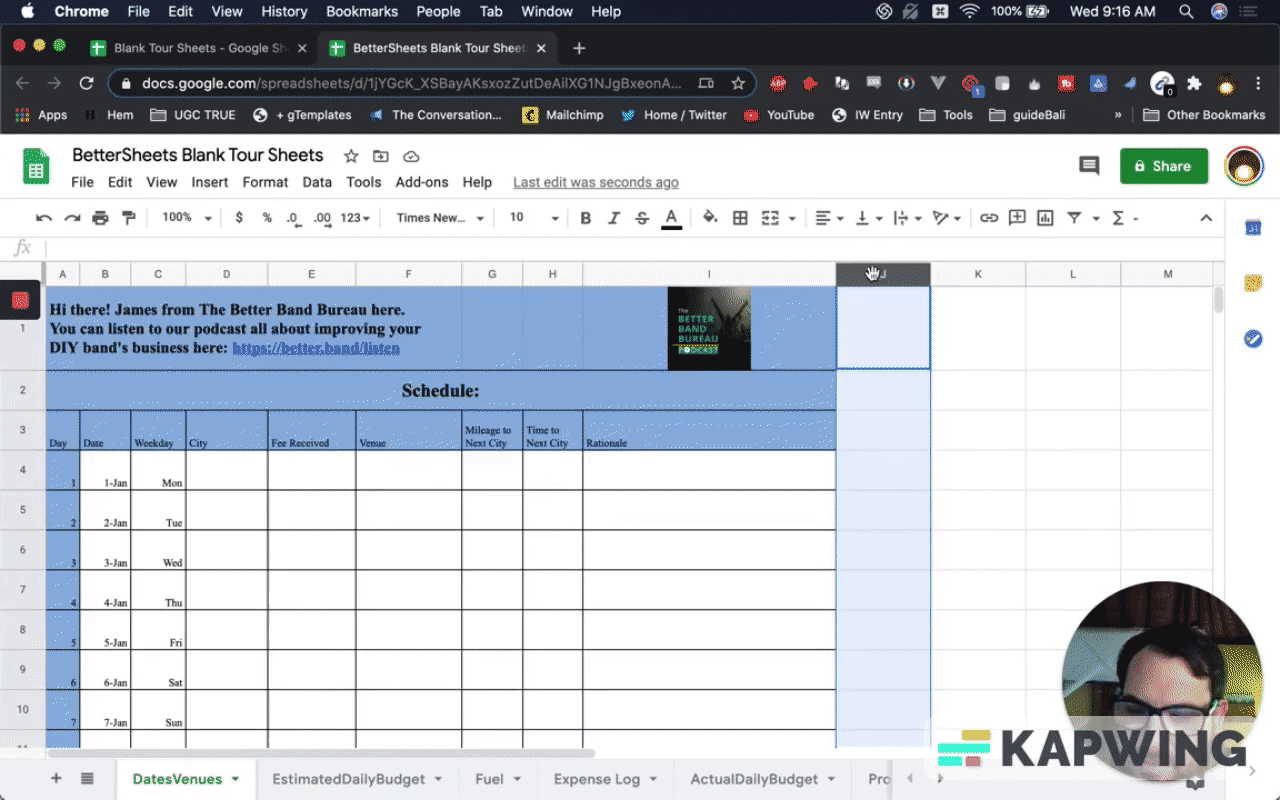 First, we have to make a copy. Let’s call it “BetterSheets Blank Tour Sheets.”