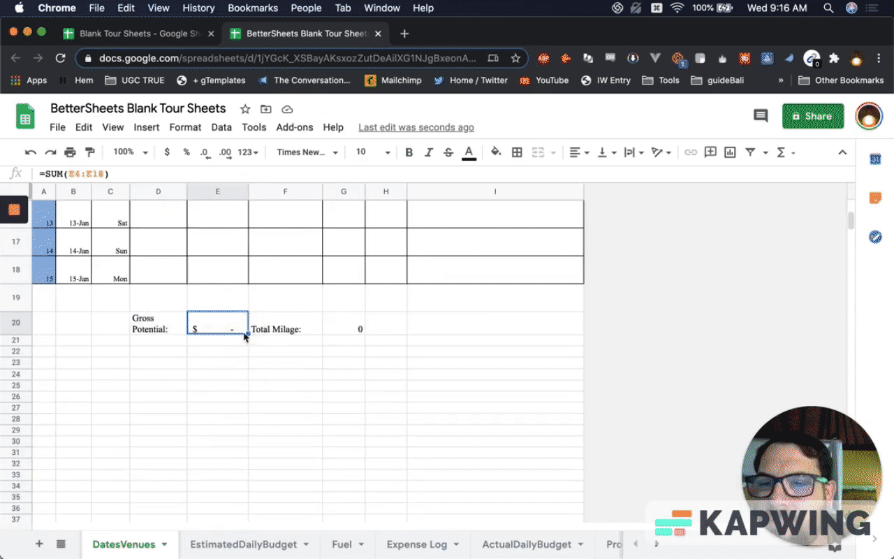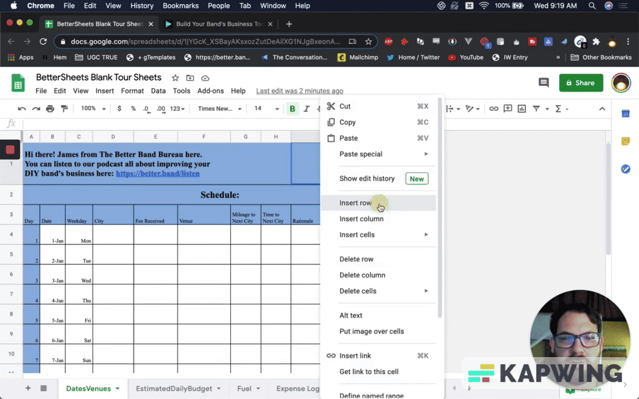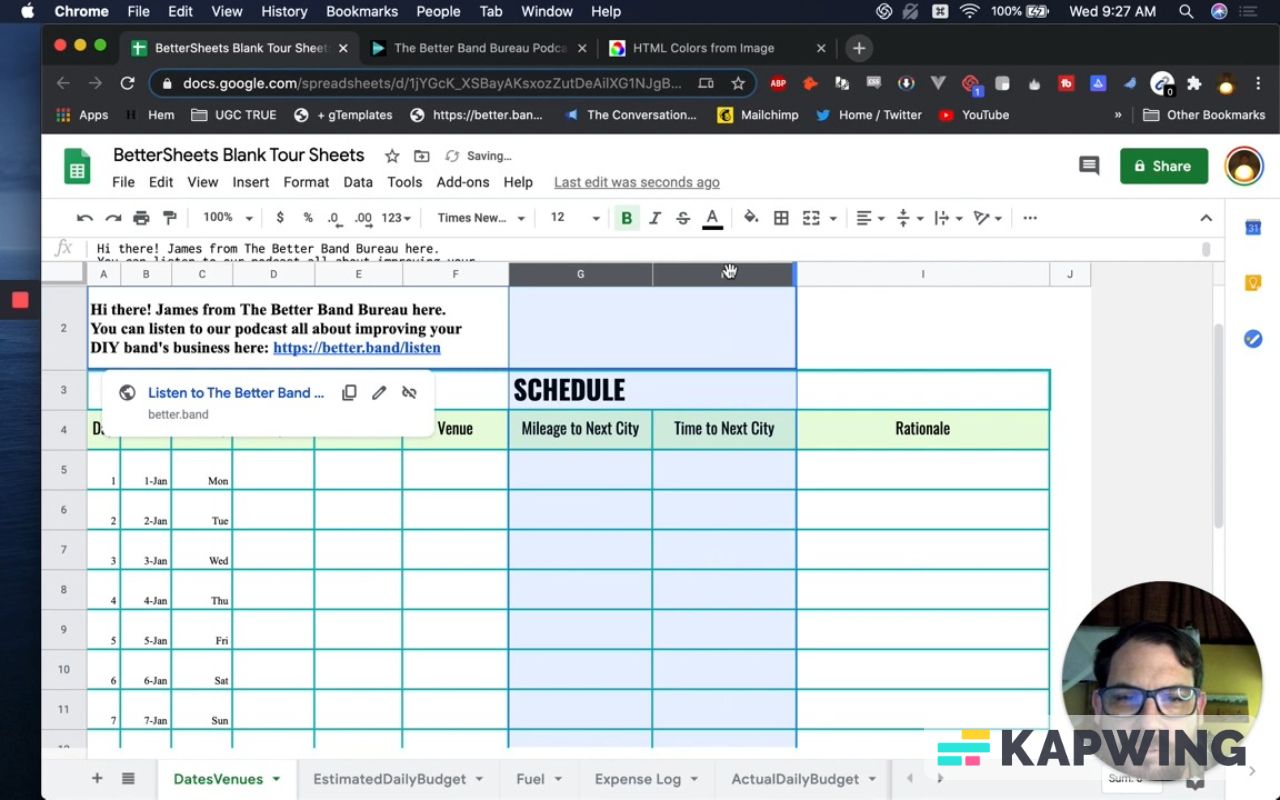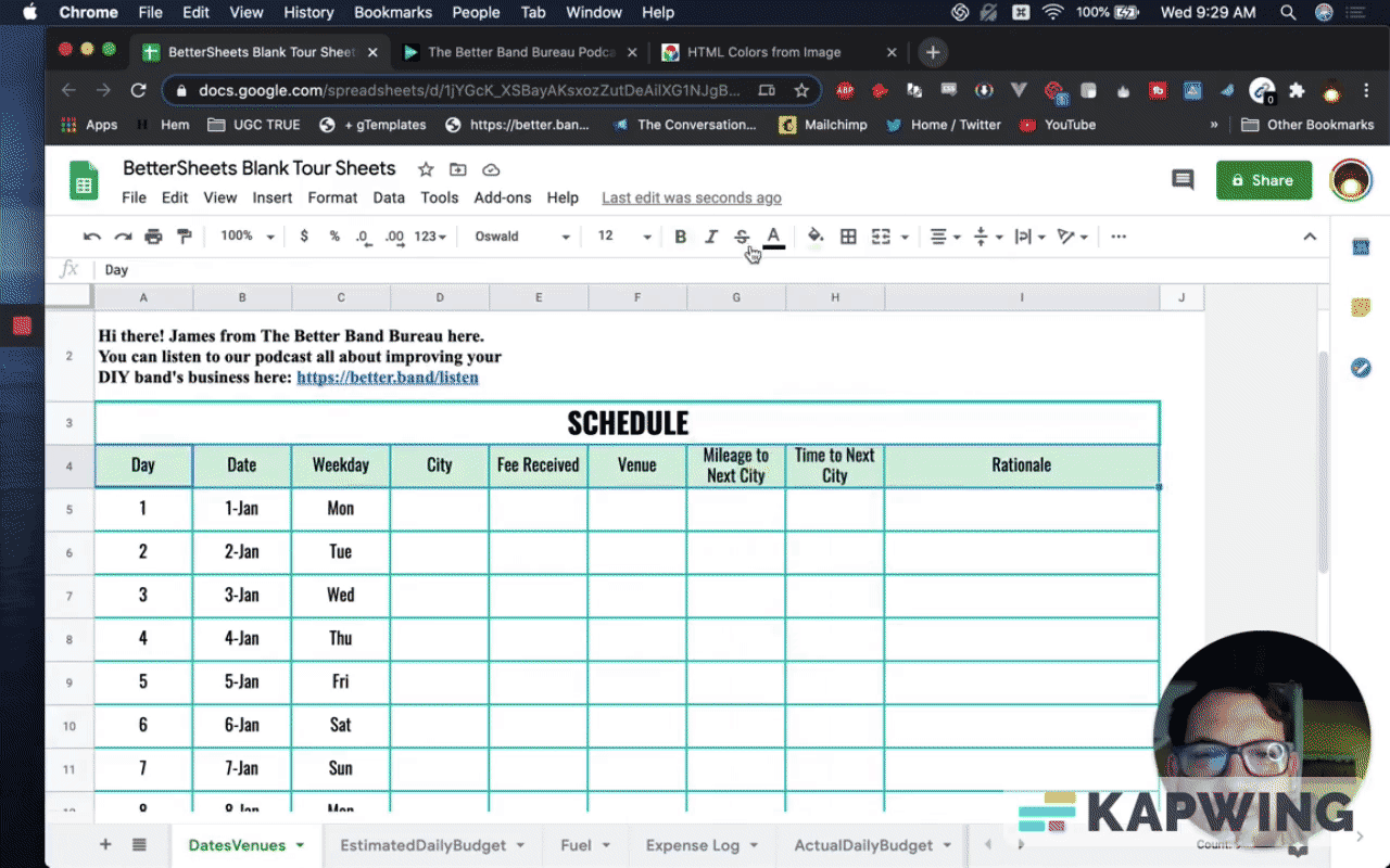 First, we have to make a copy. Let’s call it “BetterSheets Blank Tour Sheets.”