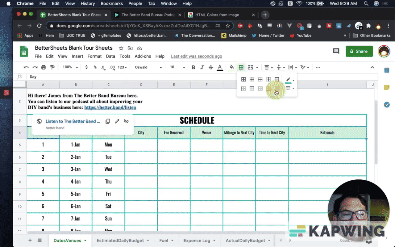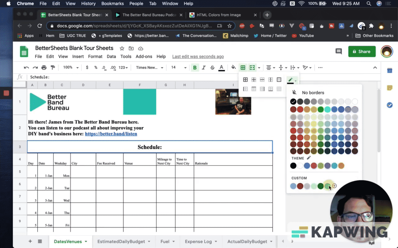 This tutorial will walk you through on how to make a schedule created with Google Sheets look better.