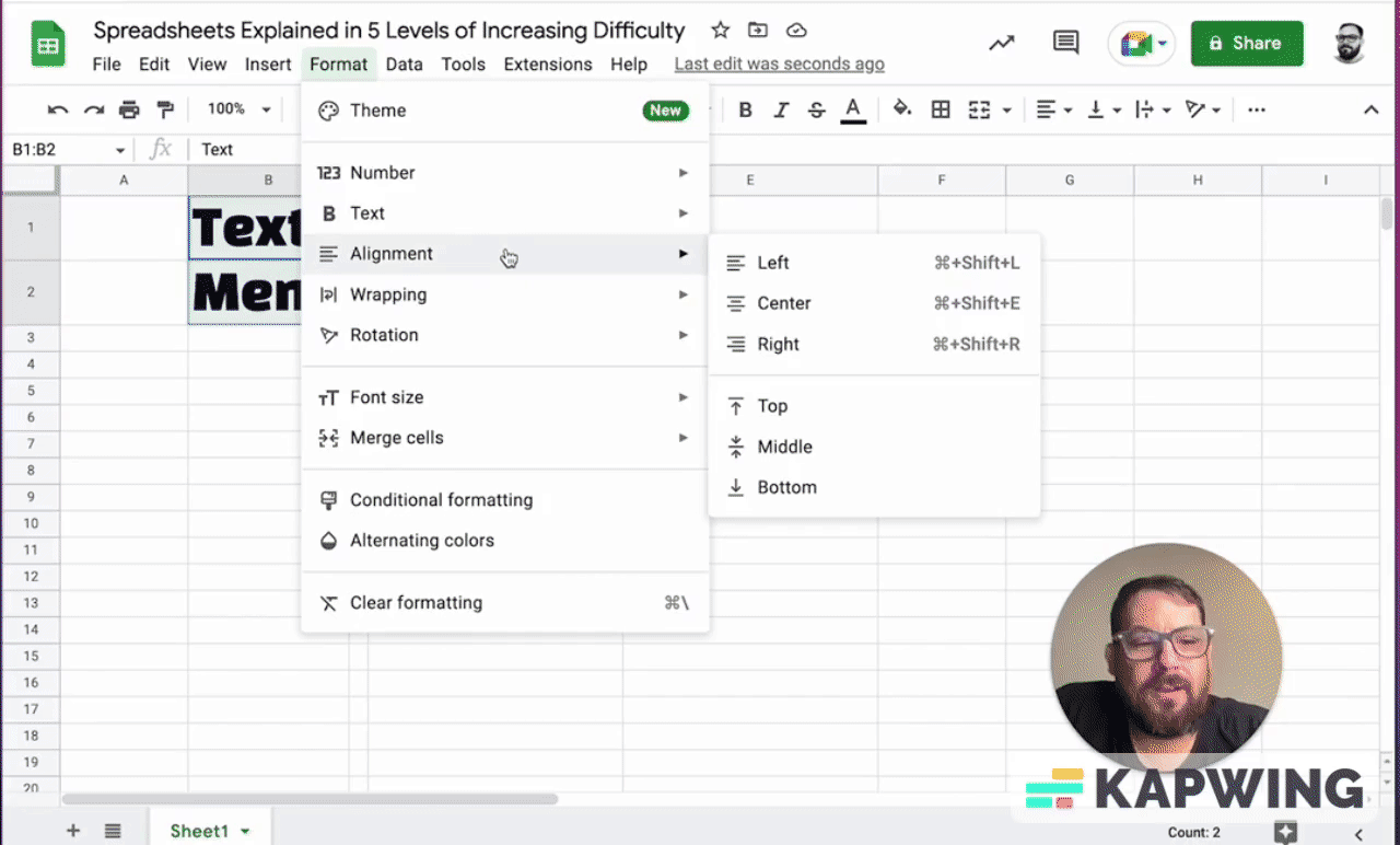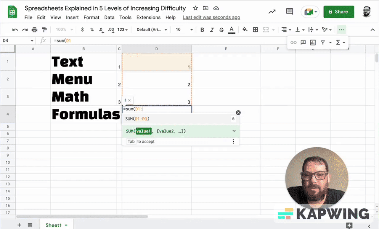 Five increasingly difficult ways of explaining spreadsheets in Google Sheets: