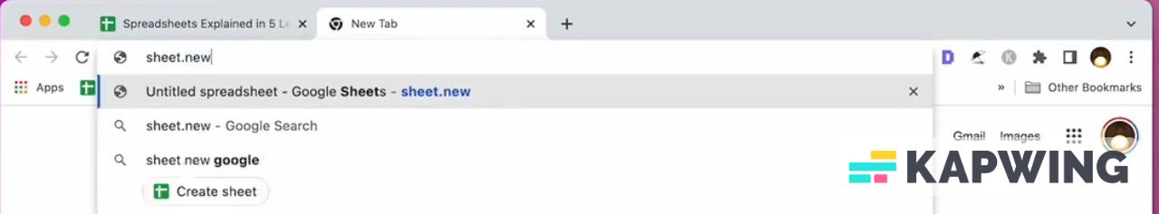 What's interesting about a spreadsheet from Google Sheets is that you can create one by just going to sheet.new and then you create a brand new spreadsheet that's blank, has one tab, 1000 rows, and 26 columns.